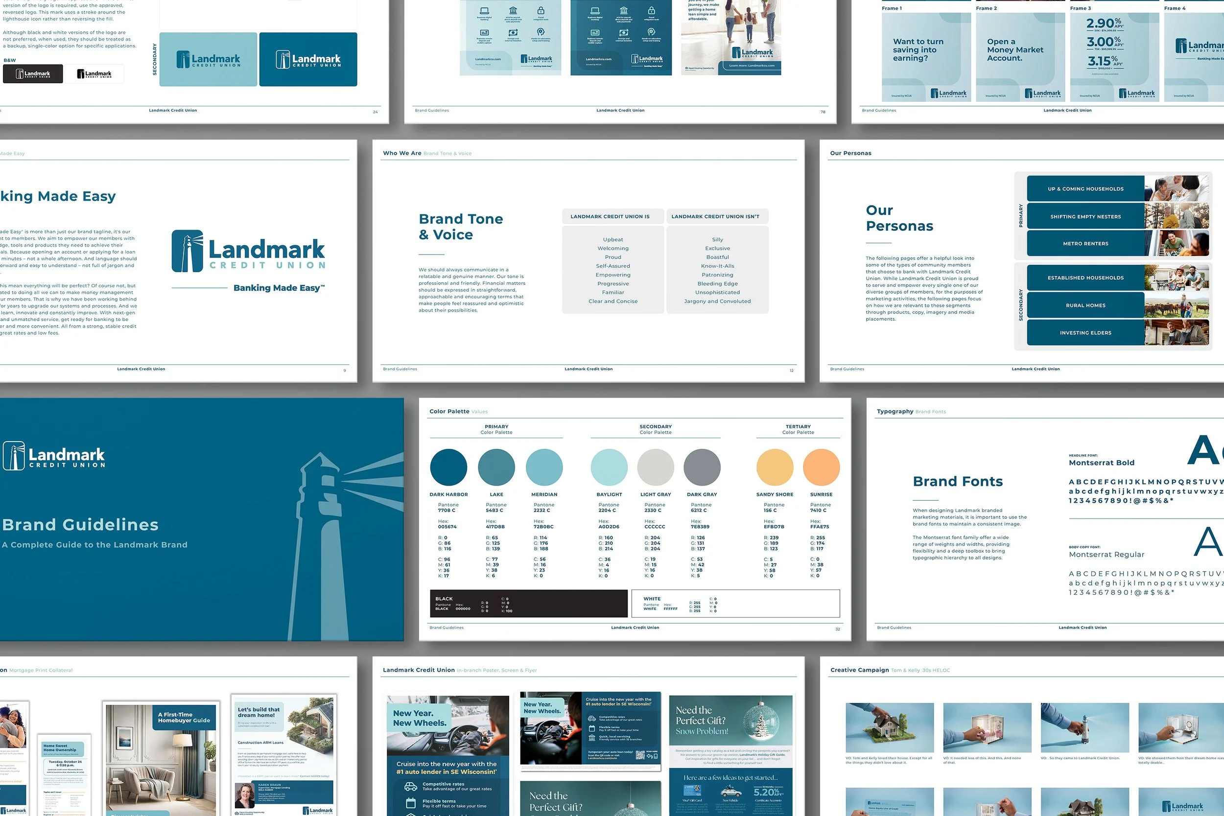 In 2023, I led the rollout of Landmark Credit Union's brand refresh, working with our agency partners to help create the new visual identity and brand voice. I directed rollout across all channels for consistency, clarity, and strategic impact. From signage and digital assets to marketing campaigns and internal communications, I helped bring the refreshed brand to life—reinforcing our commitment to a modern, member-centric experience and implementing the new tagline, Banking Made Easy.
